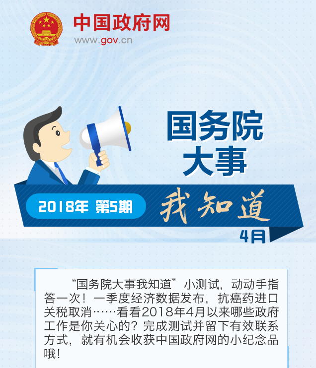 4月国务院大事我知道有奖测试来啦