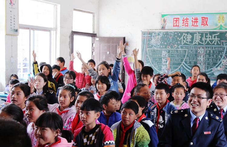 “同学们,你们谁认识这是什么呀?”“肖老师,我知道,这是发票!”课堂上顿时响起热烈的欢呼声和掌声。2018年4月27日的李庙镇闫坪中学格外热闹,原来是南漳县国税局的青年志愿者来了。 大雨过后的山路更难走了,经过近2小时的跋涉,南漳县国税局的志愿者一行13人终于抵达了目的地——南漳县闫坪中学。该校地处大山深处,学生从小学一年级就开始住校,大都是留守儿童,生活条件十分有限。